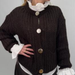 Grovstickad stilren kofta med stora guldknappar och små fickor framtill One size (36/44) Material...649 kr