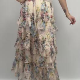 Maxikjol som för tankarna till sommarfester och långa ljumma kvällar. Den blommiga designen i tyl...699 kr