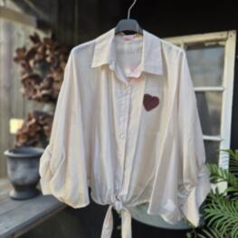 Mysig tunn blus i transparent tyg med knappar hela vägen och knyt nedtill. Broderat hjärta på br...669 kr