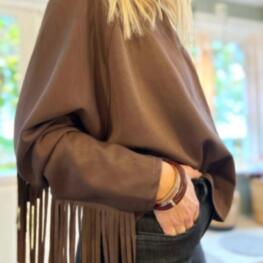 Trendig tröja med coola fransar på rygg och ärm i supermjukt sweatshirtmaterial One size (34/42)...599 kr