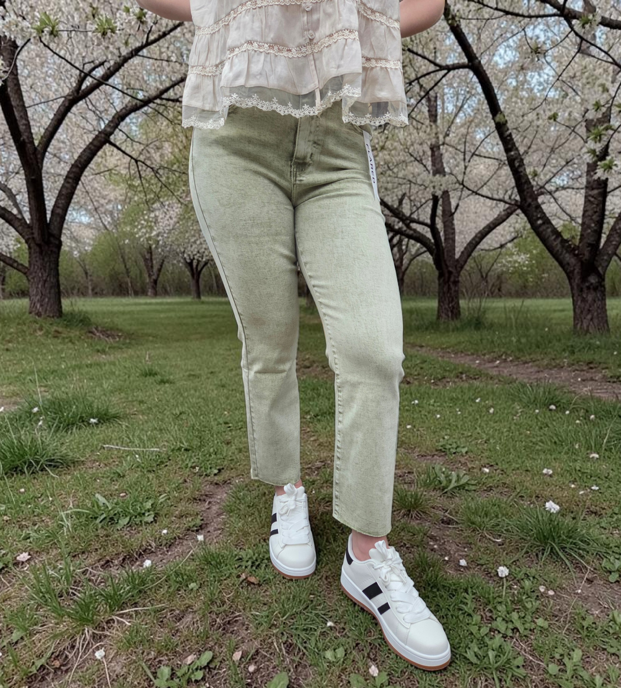 Folyrose Flared Jeans Green Cold Wash