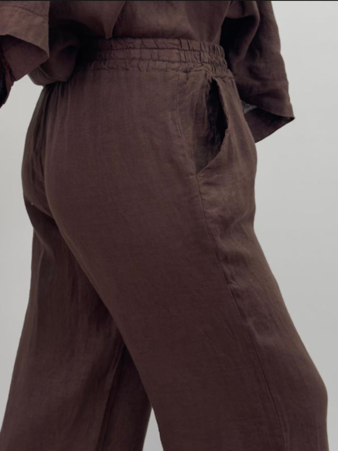 Klassisk linnebyxa i avslappnad och luftig passform med bred resår i midjan, fickor i sidorna och vidd i benen.