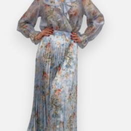Plisserad kjol i lätt glansigt material i blommigt mönster och med resår i midjan Jättefin till...579 kr