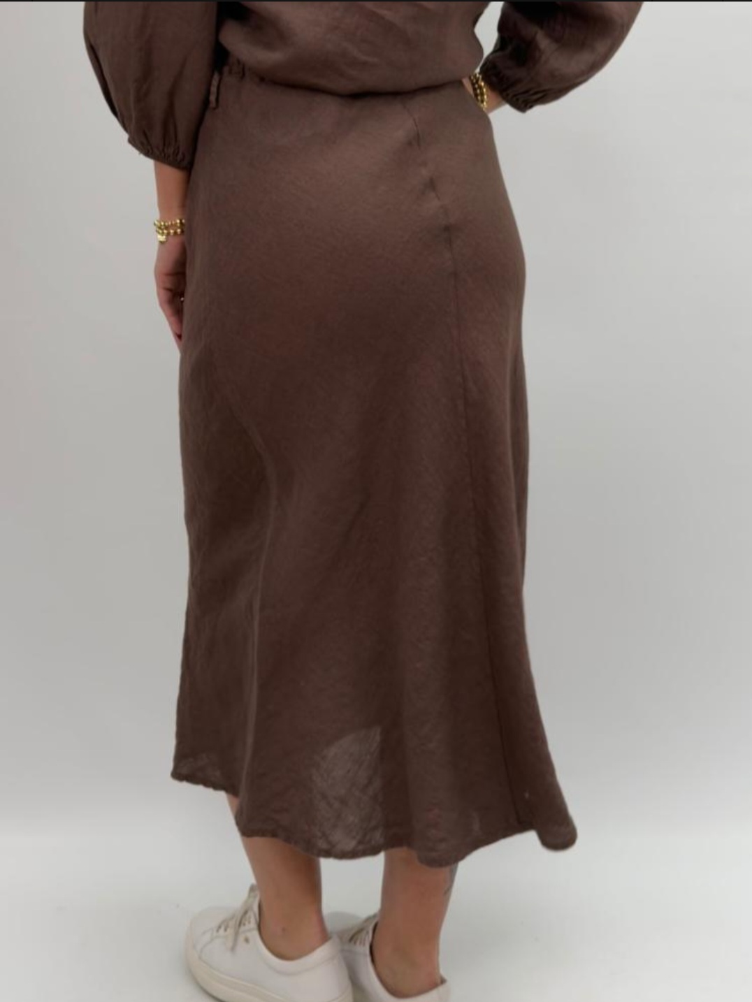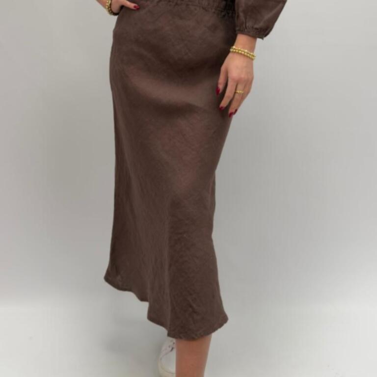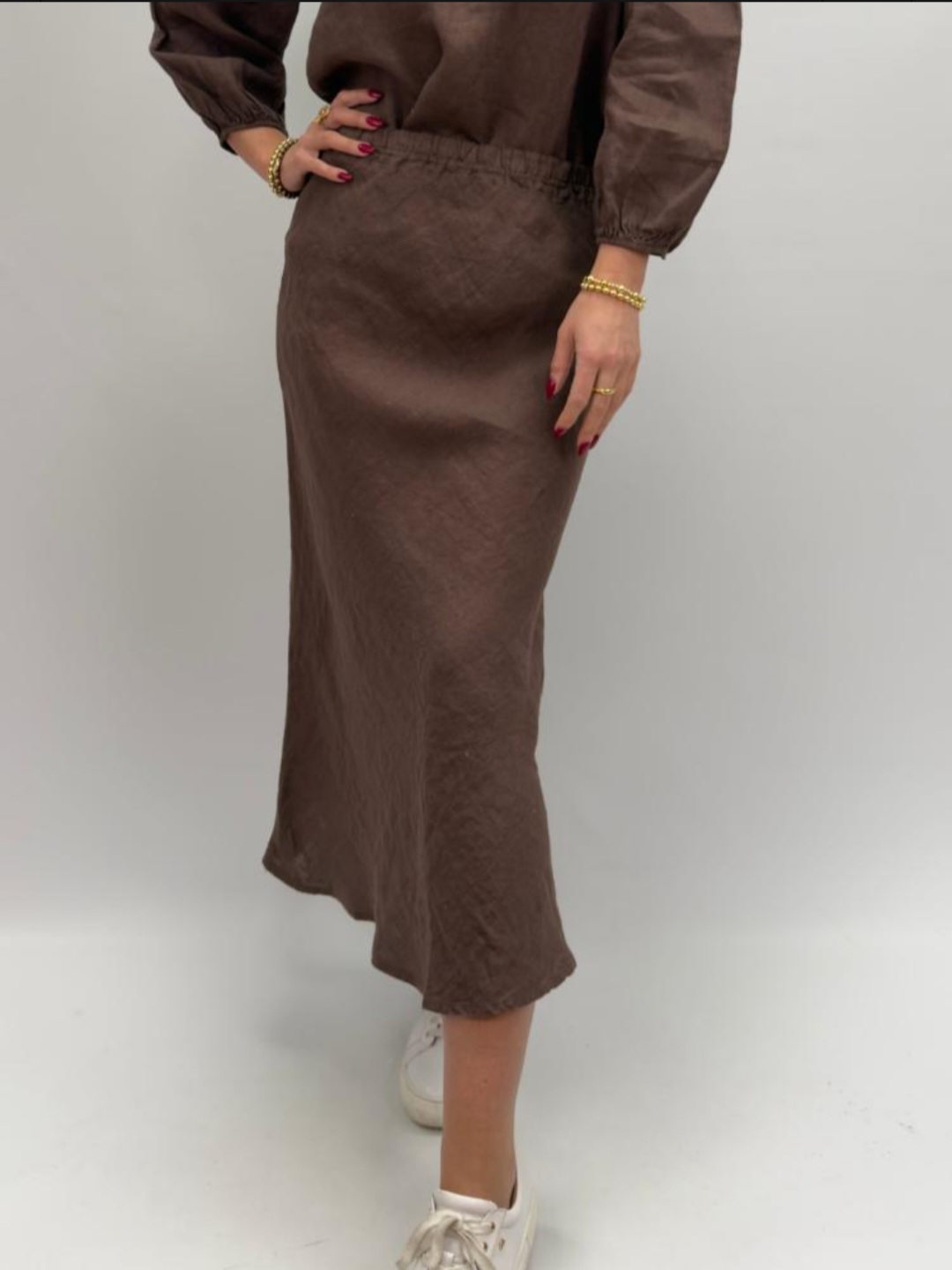 En mjuk och följsam linnekjol med bekväm resår i midjan. Lätt utställd siluett ger ett fint fall och en avslappnad känsla.