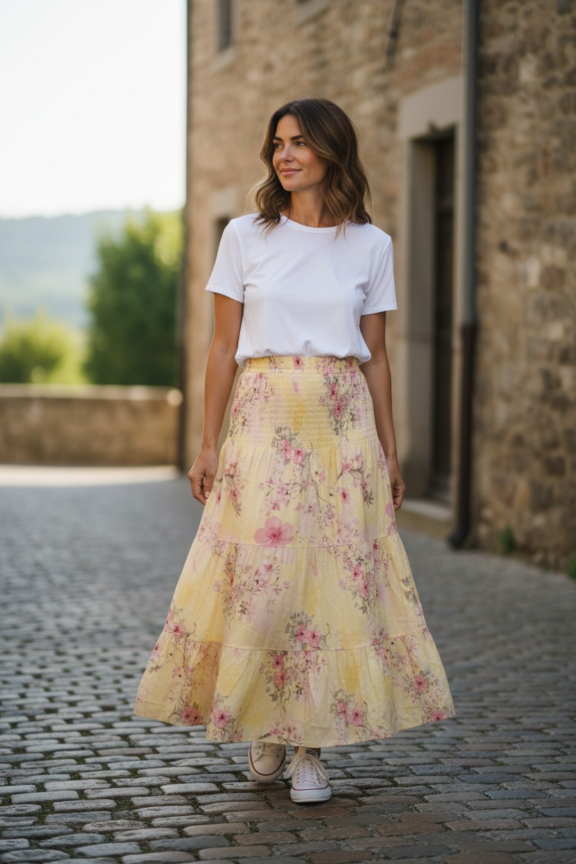 Smockkjol Blommig Gul