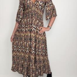 Ännu ett nytt print på Geminis poppisklänning i maximodell One size (36-44) med knytning i midja...699 kr