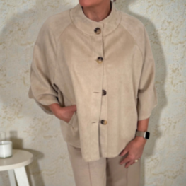 Feminim och elegant jacka i en beige nyans. Rund halsringning, långa raglanärmar och dekorativa kn...449 kr