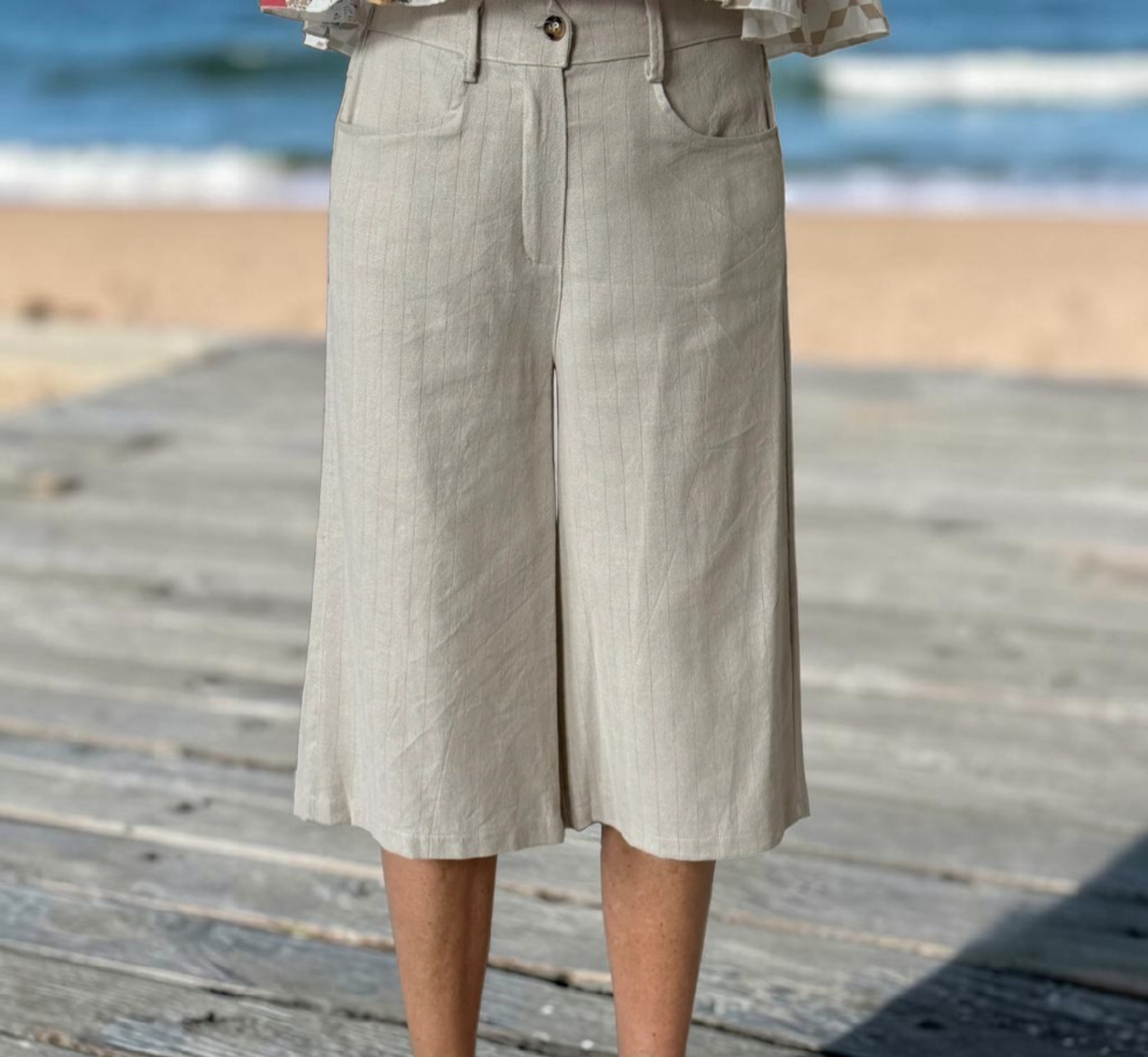 Styla dom med en ljus linneskjorta på sommaren eller kombinera dom med en åtsittande topp för att framhäva benvidden.