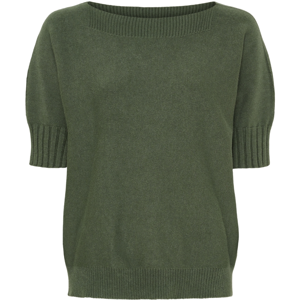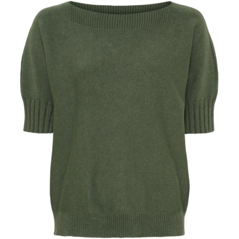 Stickad tidlös tröja med lätt båthals och bred ribbad mudd