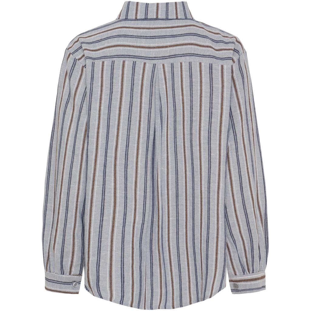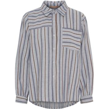 Skön skjorta med ränder i blå och bruna toner med linnelook