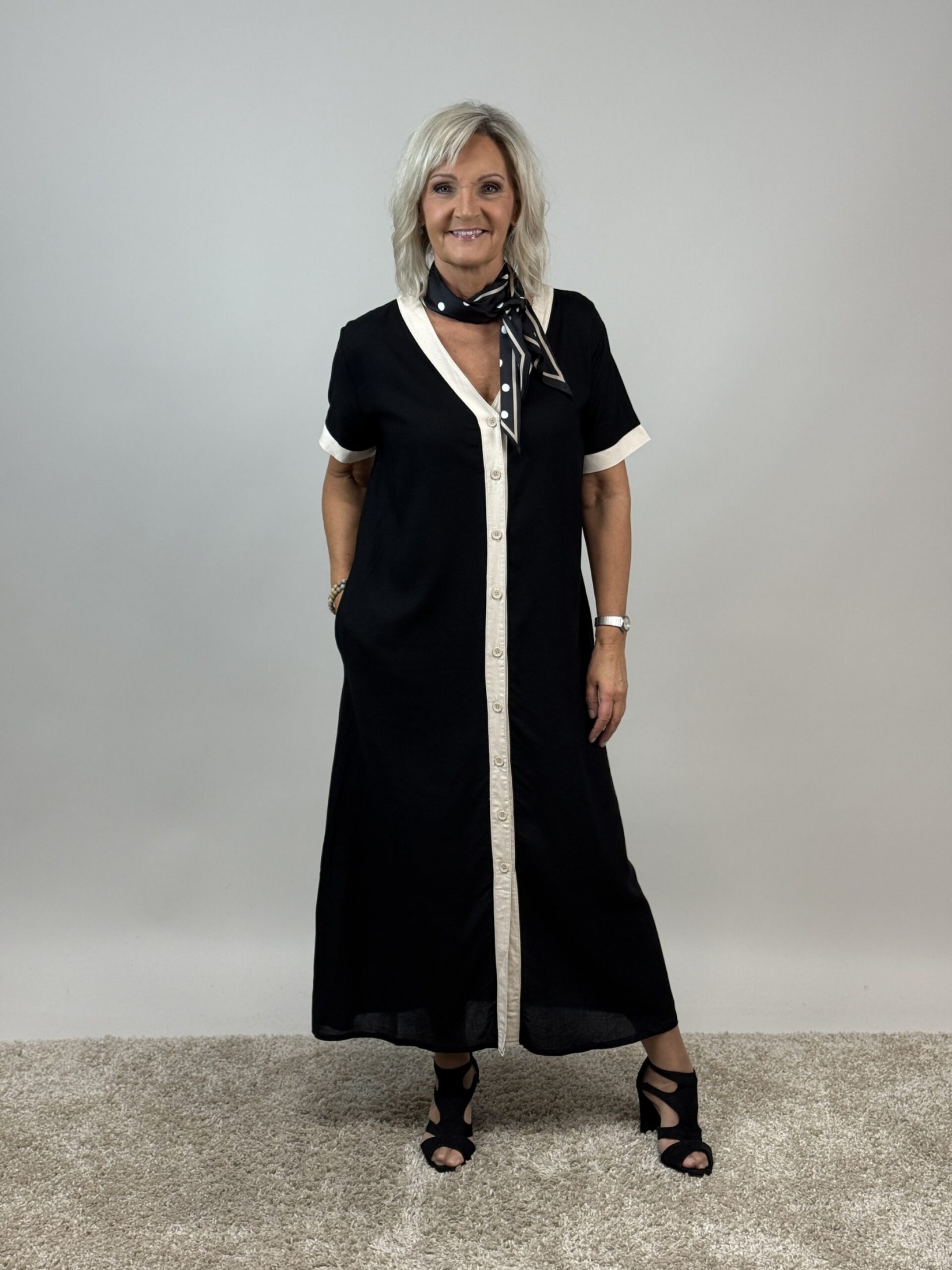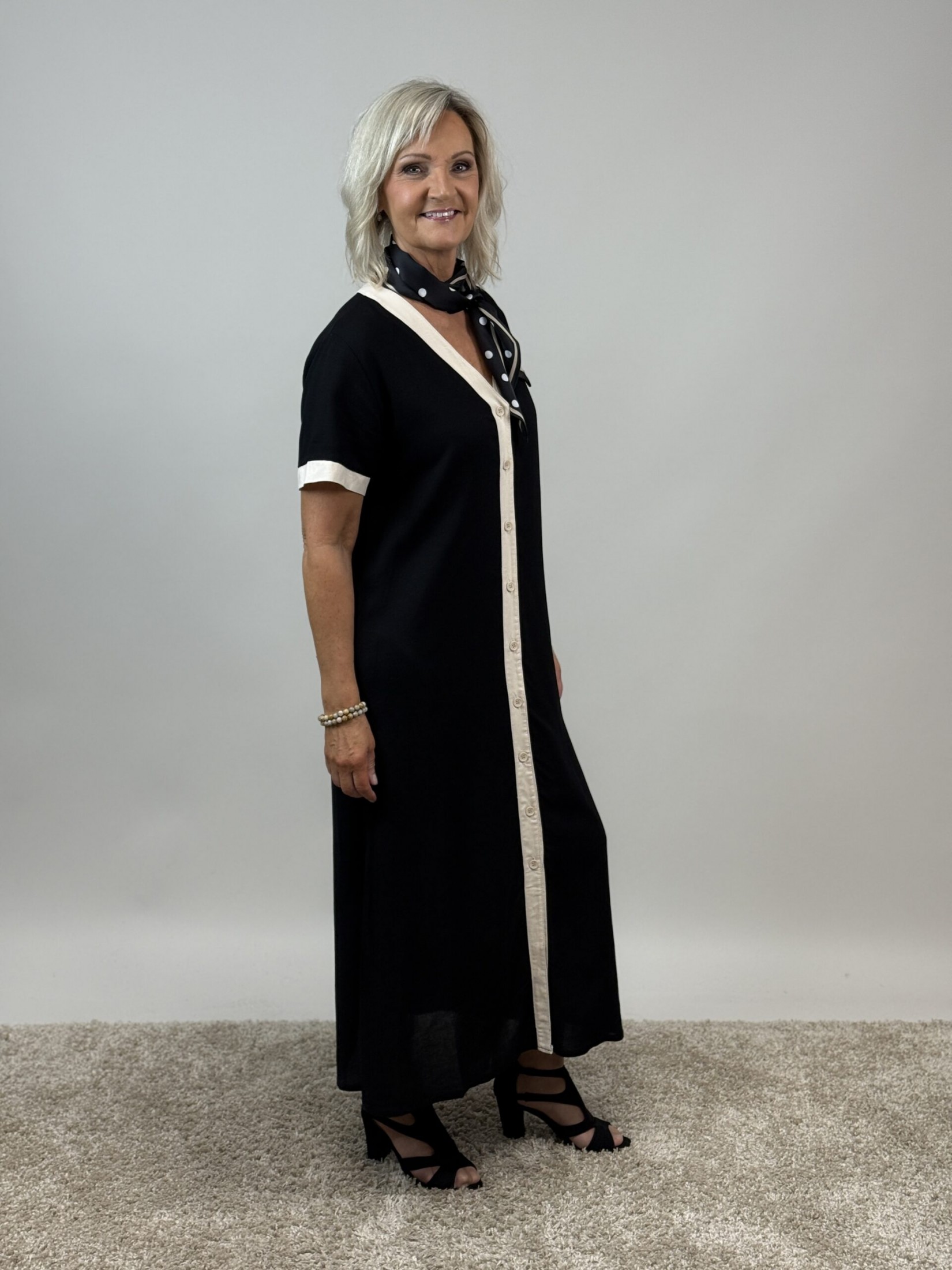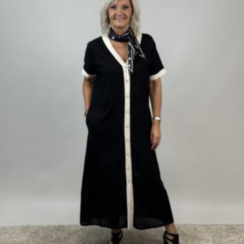 Fin helknäppt klänning i skön lin/viscose blandning och med fickor.