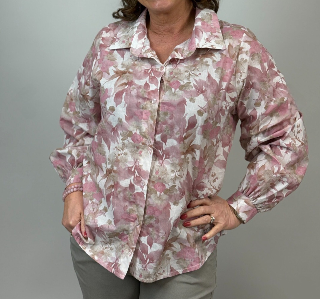 Blommig blus frås Mix by heart. Helknäppt, klassisk krage och med vidd i ärmarna.