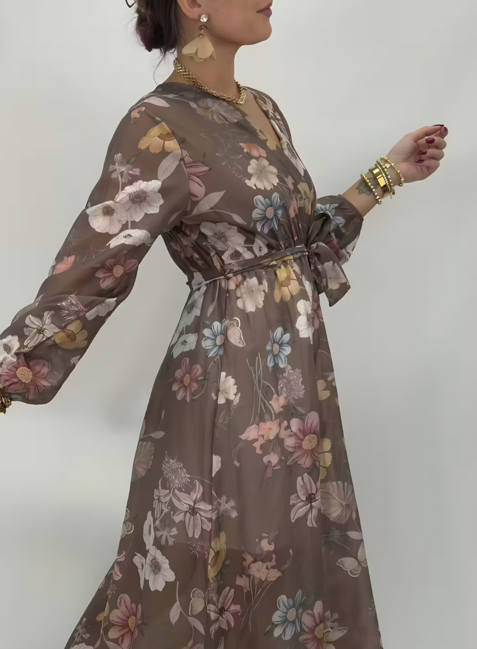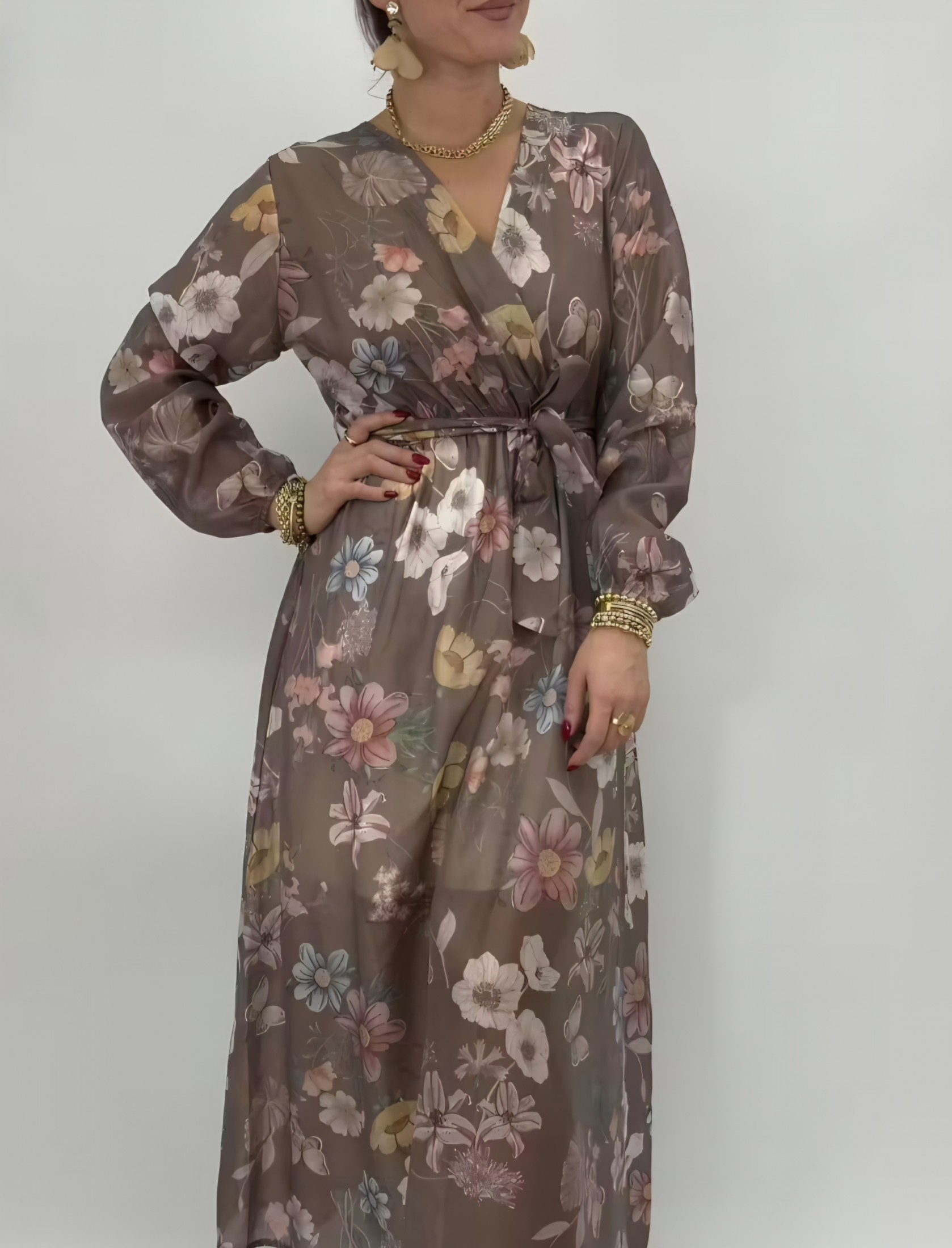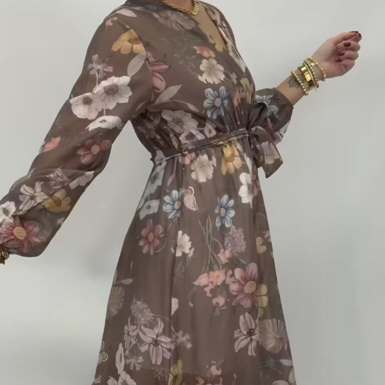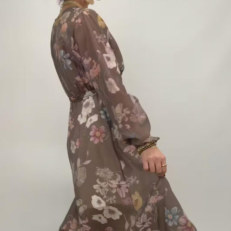 Mirelle är en vacker maxiklänning i tencel med omlottskärning och knyt i midjan för en smickrande siluett. Det mjuka fallet och det blomstrande mönstret ger en romantisk känsla – lika fin till vardags som till fest.