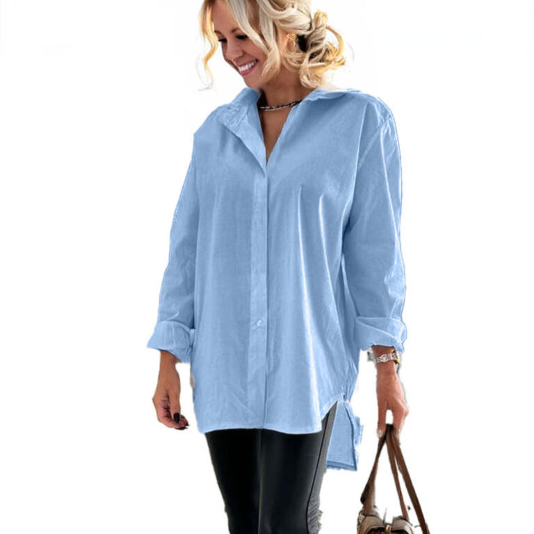 Casual skjorta i 98% bomull och 2% elastan vilket ger en mjuk och stretschig känsla. Den är något längre baktill. Med ett bystmått på 120 cm passar den många.