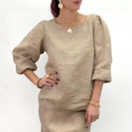 Linnetopp med rund halsringning och långa ärmar med puff som avslutas med en smal resår nertill f...579 kr