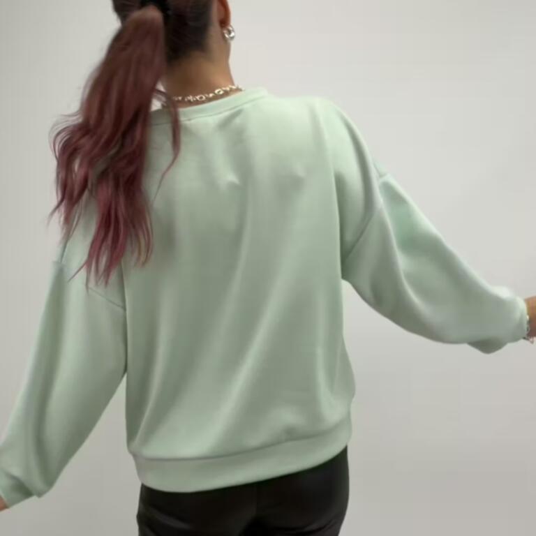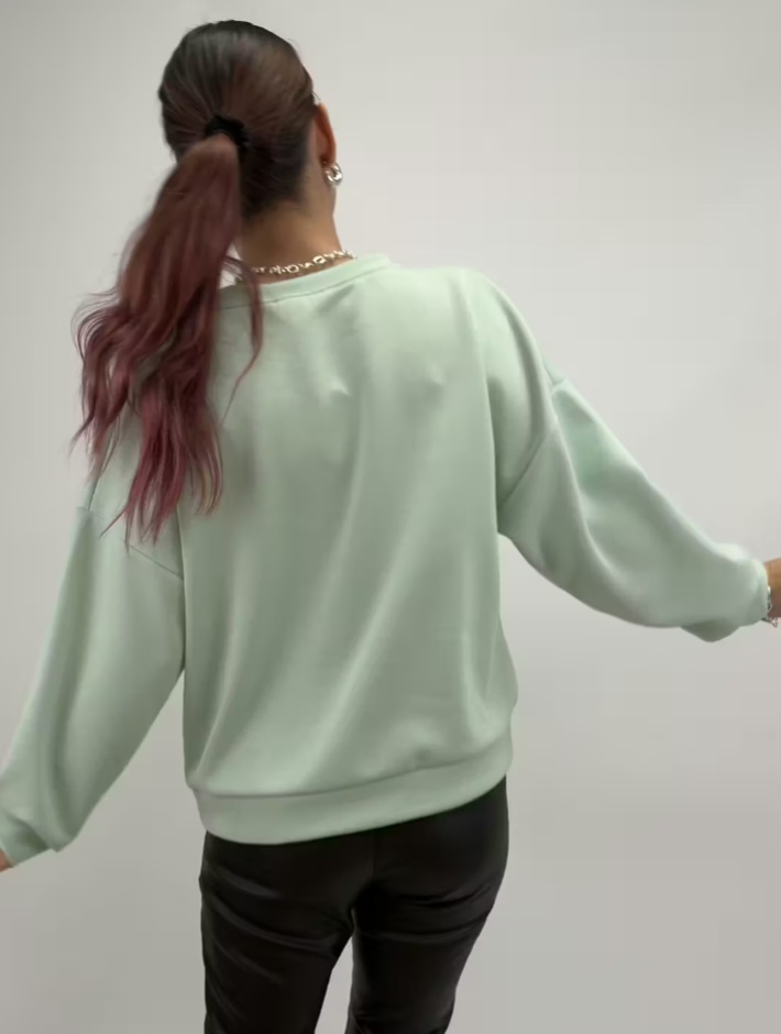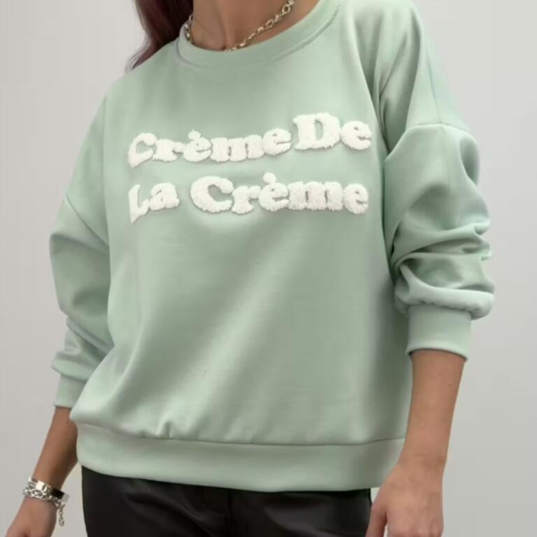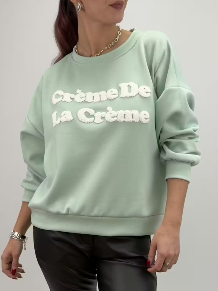 Mjuk och gosig sweatshirt med upphöjd text "creme de la creme"