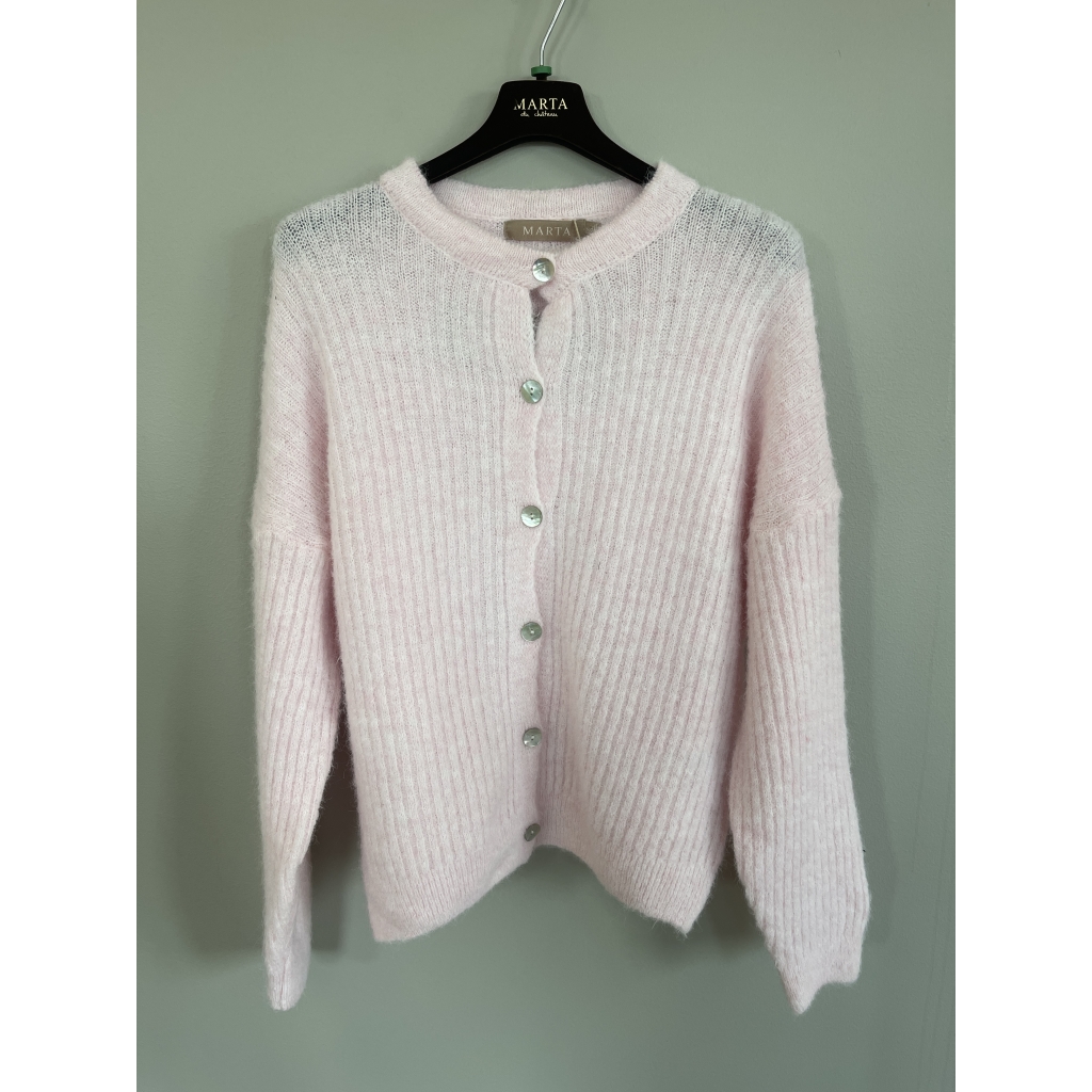 Mysig kofta med pärlemorknappar i randig stickning med mycket stretch