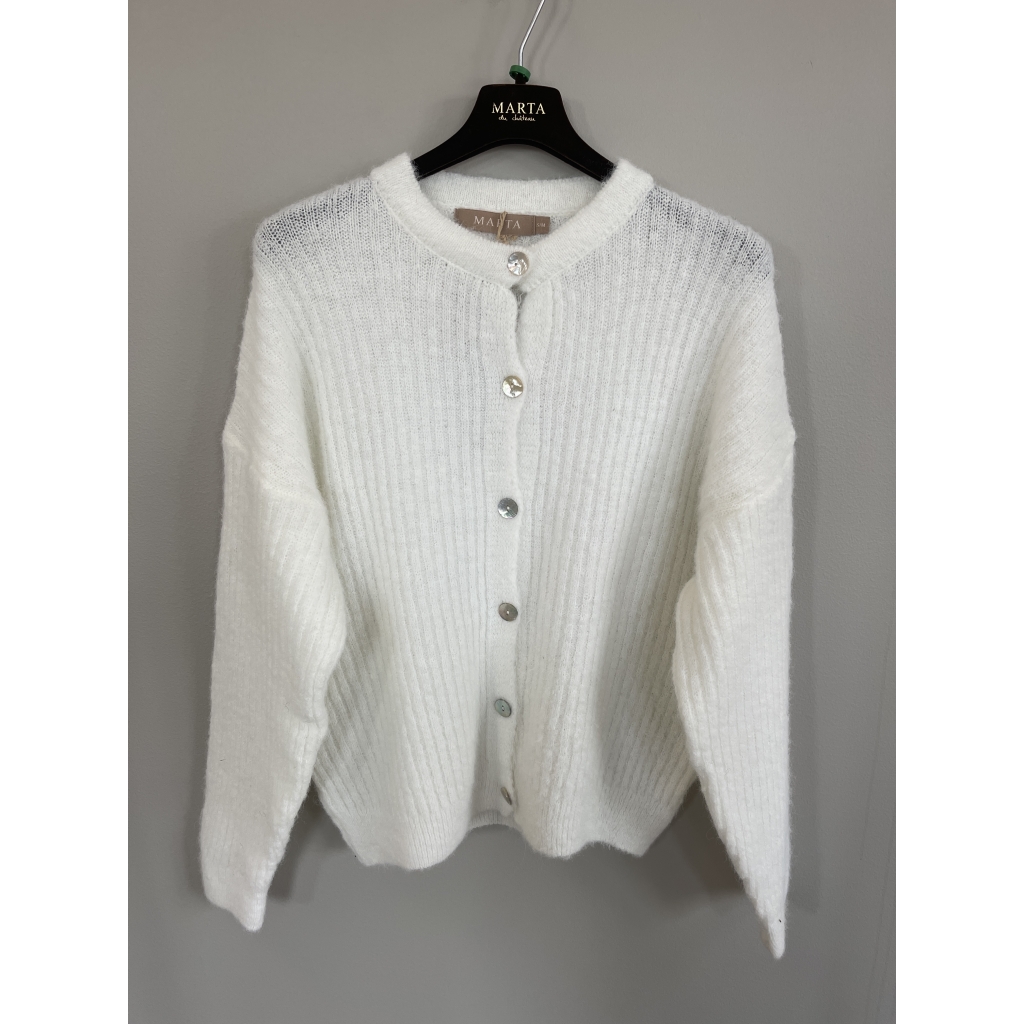 Mysig kofta med pärlemorknappar i randig stickning med mycket stretch
